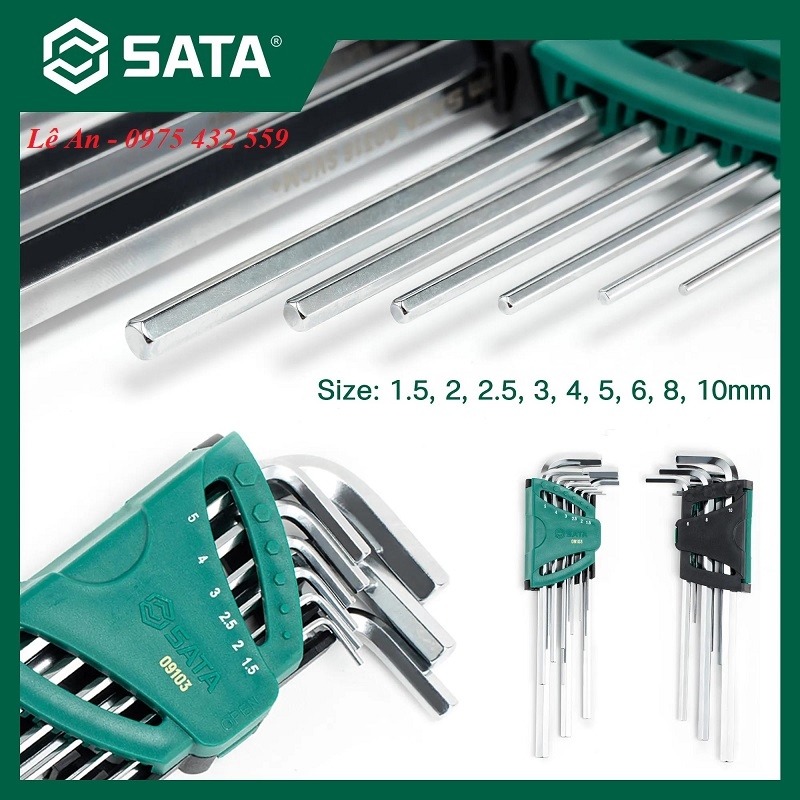 SATA 09103 là mã sản phẩm của Bộ chìa lục giác đầu bằng 9 chi tiết hệ mét (thân siêu dài). Đây là một trong những bộ dụng cụ cầm tay bán chạy nhất của thương hiệu SATA (thuộc tập đoàn Apex Tool Group - Mỹ) nhờ sự kết hợp giữa độ bền vượt trội và tính linh hoạt.
