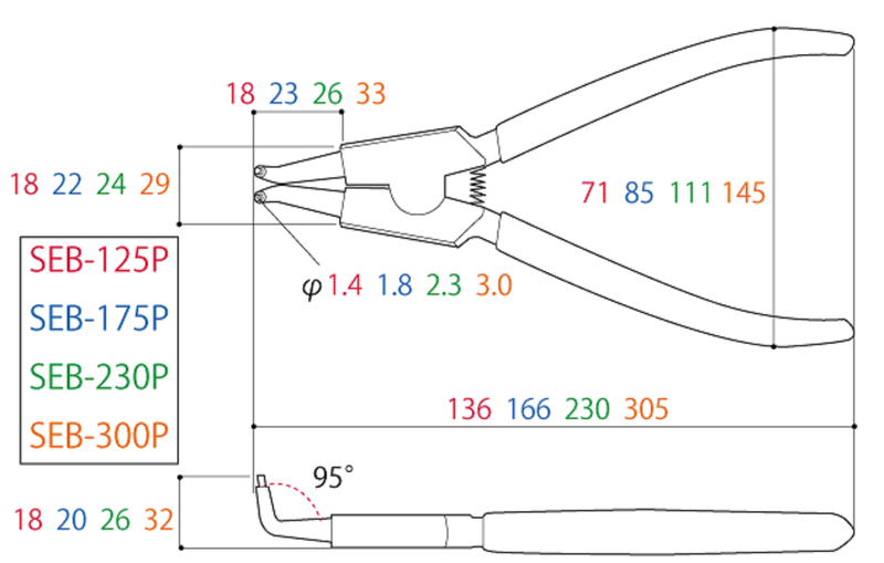 Kìm mở phe mũi cong Tsunoda SEB-175P là sản phẩm cao cấp đến từ Nhật bản. Đối với vòng chụp bên ngoài (vòng tròn). Độ bền cao và khả năng chống mài mòn được thực hiện bằng cách sử dụng dây đàn piano cho các bit. Đáy bit thuôn nhọn và bề mặt bit được xử lý chống trượt ngăn không cho các vòng bị rơi ra ngoài. Giữ ổn định nâng cao an toàn và hiệu quả công trình.