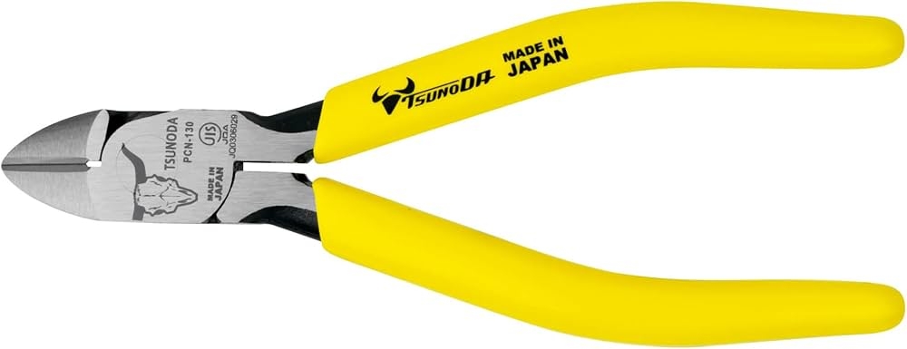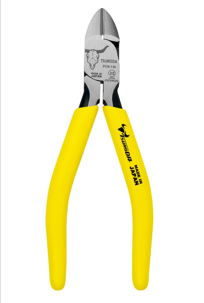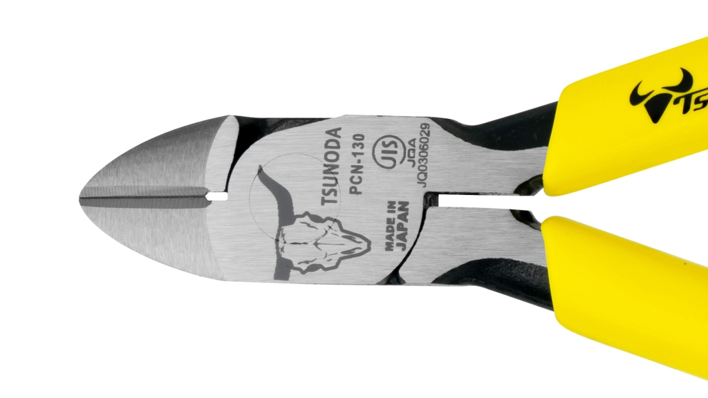Kìm cắt cạnh cộng lực Tsunoda PCN-130 : Chất liệu thép hợp kim đặc biệt , độ cứng tới 64 HRC , cao nhất của tiêu chuẩn kìm cắt .Kết cấu lệch tâm và tay cầm đàn hồi giúp giảm lực cần thiết khi cắt tới 30% .