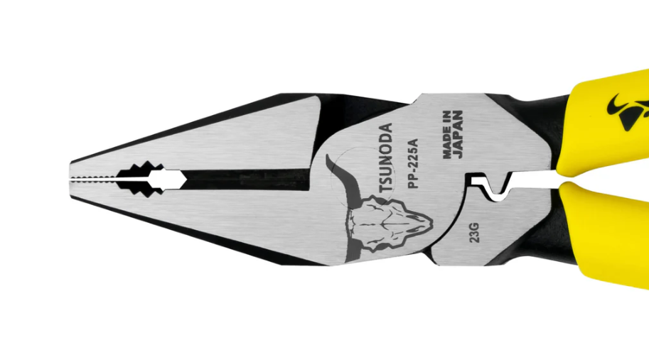 Kìm đầu bằng có bấm cos Tsunoda PP-225A : Chất liệu thép hợp kim đặc biệt , độ cứng cao nhất tới 64 HRC .Kết cấu lệch tâm và tay cầm đàn hồi giúp giảm lực cần thiết khi cắt tới 30% .Sử dụng cắt ,uốn , kẹp kim loại , có thêm chức năng ép cos điện.