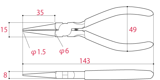 Chiều dài mỏ kìm : 35mm