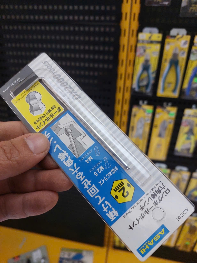 Lục giác chữ L đầu bi 2.0mm AQ0200 Asahi : Đầu bi 2mm sử dụng vặn ốc lục giác M2.5 . Chất liệu thép CRV mạ Crom siêu cứng có khả năng chịu nhiệt , chịu mài mòn tốt .