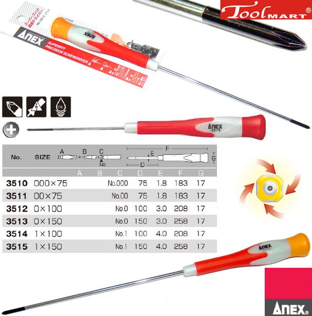 Tô vít bake mini Anex No.3514 là sản phẩm cao cấp đến từ Nhật bản. Tay cầm vừa vặn và mềm mại để cải thiện hiệu quả công việc. Thích hợp sử dụng cho công việc chính xác như các thiết bị điện tử, đồng hồ và máy ảnh. Nắp ở phía sau xoay để làm việc chi tiết trơn tru. Kết thúc điểm màu đen có độ chính xác cao cho phù hợp hoàn hảo với vít. Tô vít bake mini No.3514 Tay cầm mềm, cách nhiệt Giúp bạn hoàn thành công việc nhanh chóng và hiệu quả.