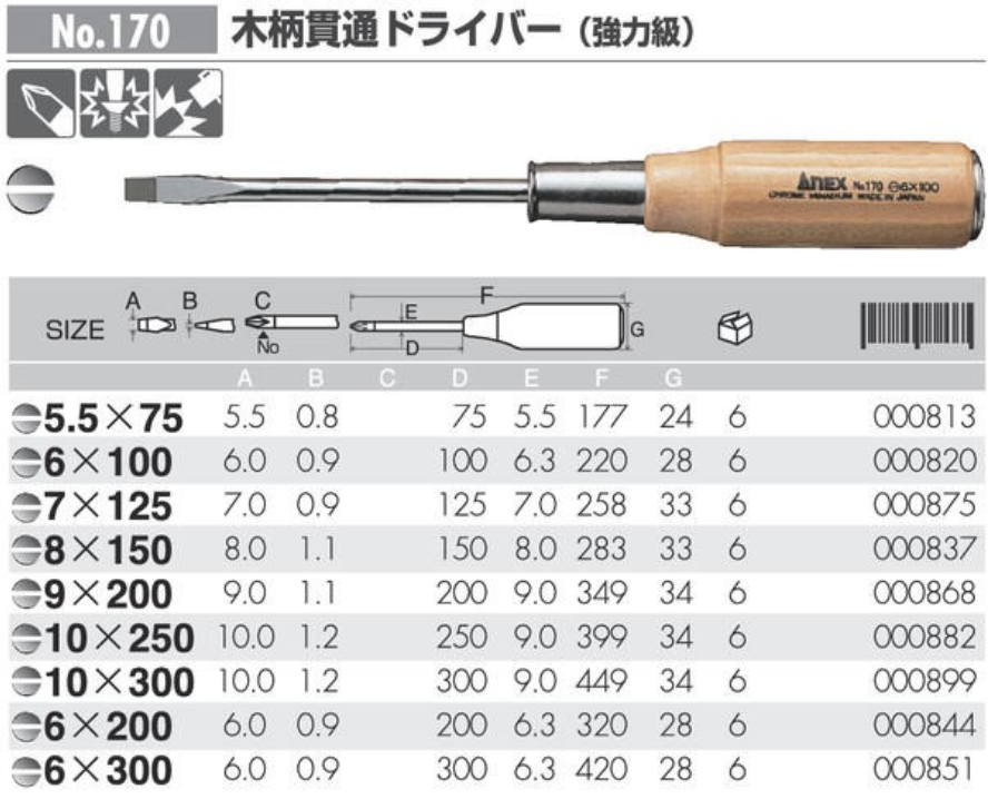 Tô vít đóng 2 cạnh tay gỗ Anex No.170-8×150 Là sản phẩm cao cấp đến từ Nhật bản. Tay cầm bằng gỗ tự nhiên sẽ phù hợp theo thời gian. Lớp hoàn thiện điểm đen có độ chính xác cao. Vì trục có từ tính, nó cải thiện hiệu quả công việc mà không làm rơi vít trong quá trình làm việc. Nó là một tuốc nơ vít có thể xoay cả ốc vít bị hỏng và ốc vít thông thường. Bạn có thể siết chặt và nới lỏng các vít như một tuốc nơ vít thông thường. Đối với các vít bị hỏng chỉ cần dùng búa đóng nhẹ vào đầu cán là có thể tháo vít. Nâng cao hiệu suất công việc cho người sử dụng.